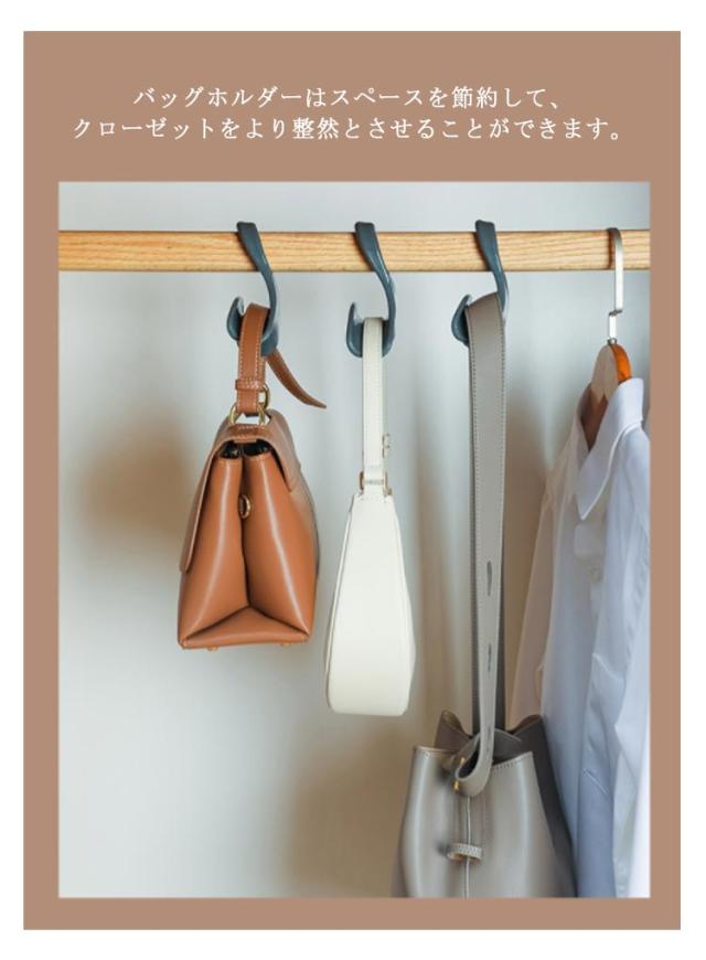 | 【20個セット】【バッグハンガー】【耐荷重15kg】 バッグの型崩れを防いで収納できるハンガーです。 ゆるやかなカーブ状と滑らかな表面はバッグのハンドル部分を保護することができます。 とても軽くて持ち運びにも便利です。家でも外でも使えます。 家の中におしゃれで優雅な雰囲気をプラスします。 バッグホルダーはスペースを節約して、クローゼットをより整然とさせることができます。 キャップやネックレス、ストール、ネクタイなどの収納にも役立ちます。 | |