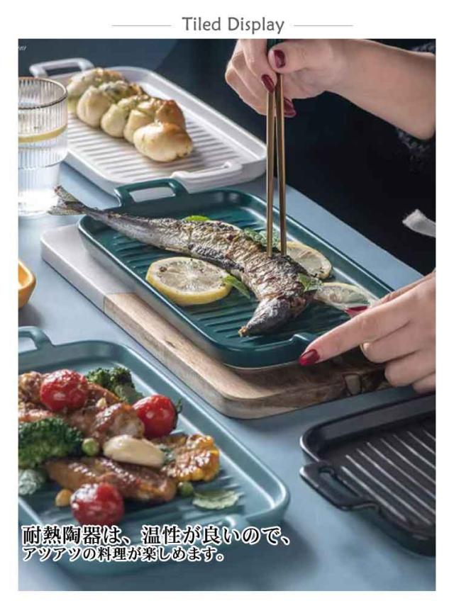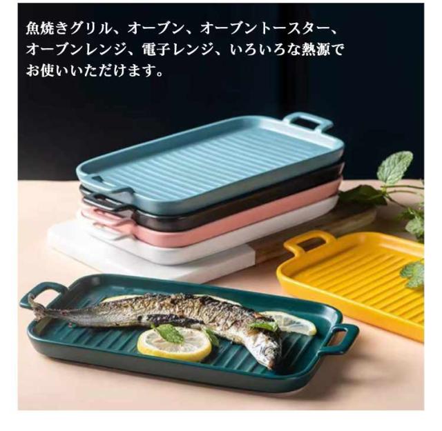 グリルパン 魚焼きグリル トレー 北欧 オーブン料理 プレート ロースター グラタン皿 電子レンジ 耐熱皿 セラミック グリルプレート 持ち手付き グリル専用焼き魚トレー グリル用 魚焼きトレー グリルプレート 魚焼きグリル 秋刀魚 さんま 鮭 鯖 さば 唐揚げ ギフト 送料無料