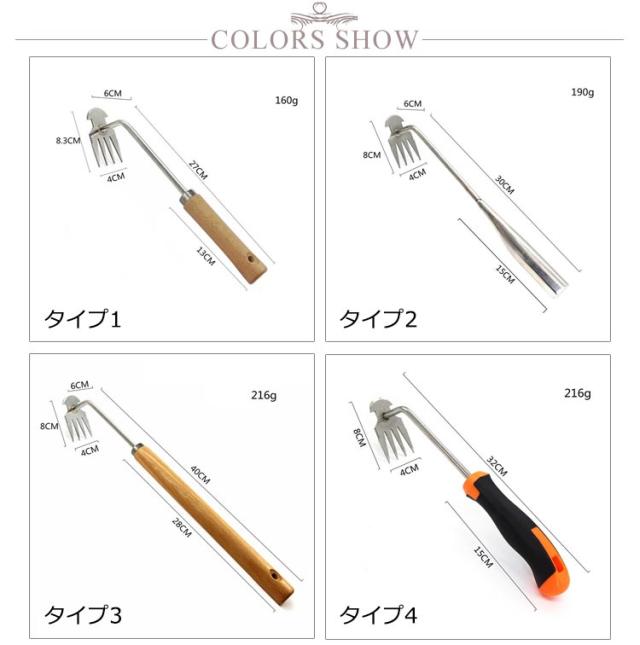 | 2in1多機能 全11タイプ選べる! 除草のための除草、耕作、掘削ができる多機能ツールです。 高品質のマンガン鋼を使用し、鋭利で耐摩耗性があり、高硬度で表面は研磨されているため非粘着性があります。 人間工学に基づいた長くてハンドルが特徴で、狭いスペースに届き、問題なく雑草を取り除くことができます。 草取りや土掘り、雪かき等の農作業補助具として最適です。 庭園や畑等で手軽に除草・掘削作業が行える他、アザミやカニクサ・ハコベ等の植物を根こそぎ除去することも可能です。 | |