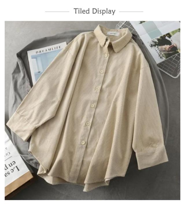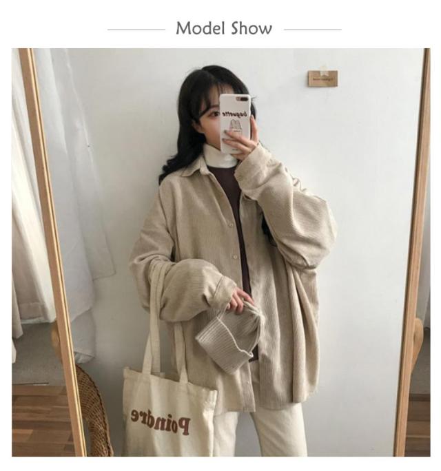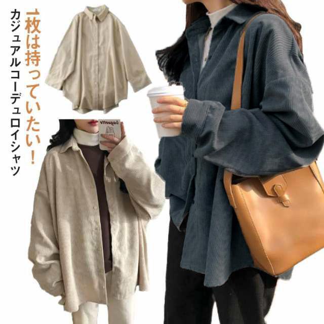 コーデュロイ ゆったり シャツ 長袖 トップス レディース ビッグシルエット 着痩せ 体型カバー カジュアル 春 秋 冬 お出かけ 無地 シンプル 韓国ファッション トレンド 定番 ジャケットシャツ オーバーサイズ ゆったり 大きめサイズ 重ね着 通勤 通学 送料無料