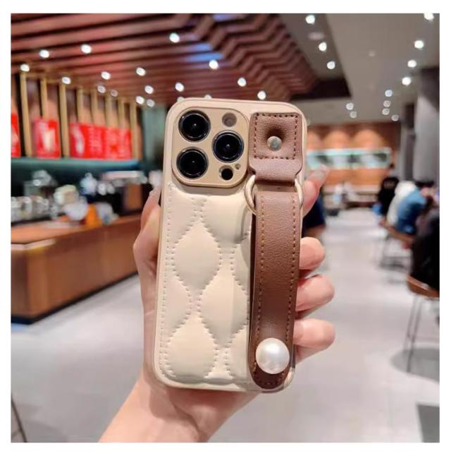 | 【2個セット! ケース式*ハンドル式】 【キルティング生地が柔らかなiPhoneケース】 優しい手触りのPUレザーを使用。 ケース内側の素材にもこだわり、iPhone本体を優しく保護します。 やさしい色合いがあらゆる年代にオススメです。 | |