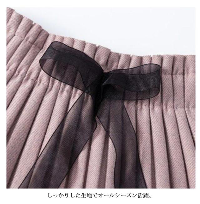 | お姉さんらしいスタイルのプリーツスカート。 ウエストはゴム仕様でフロントからの見た目もスッキリ。 普段着でも通学でもフォーマルにも。 しっかりした生地でオールシーズン活躍。 | |