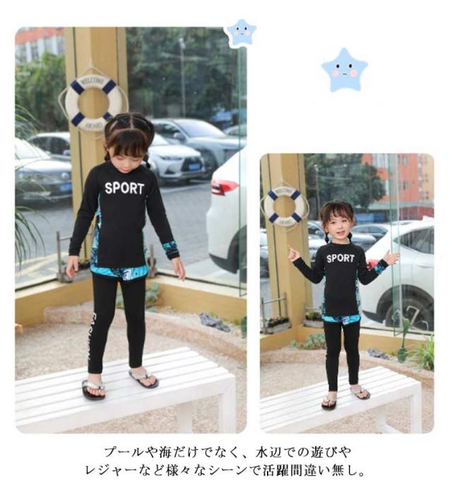 ラッシュガード キッズ 上下セット 女の子 男の子 水着 3点セット 長袖 セットアップ セパレート 150 小学生 長ズボン こども レギンス ジュニア マリンウェア オシャレ 120 110 幼児 子供 スイミングウェア 水着
