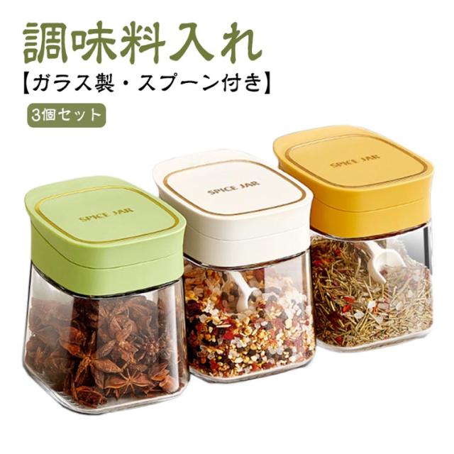調味料入れ 3個セット ガラス製 スプーン付き 調味料ボトル 調味料ポット 大容量 スパイスジャー 塩入れ 砂糖入れ 調味料ケース スパイスボトル 保存容器 おしゃれ 収納 使いやすい 湿気防止 調味料容器 新生活 詰め替え 衛生的 スパイス入れ