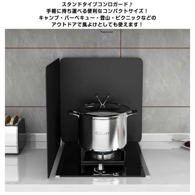 コンロカバー コンパクトレンジガード 油はねガード 2面タイプ 使うときだけ! IHレンジも適用 レンジカバー コンロガード 天ぷらガード コンロ周り フッ素加工 折りたたみ キッチンガード オイルガード 油はね防止 しっかりと自立 繰り返し使える