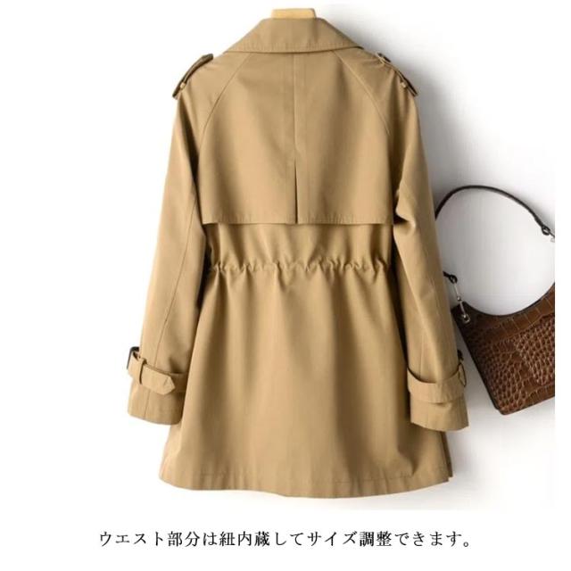 裏地付き 秋服 トレンチコート レディース アウター 送料無料 コート ステンカラーコート ミドル丈 通勤 OL 春 秋 定番 20代 30代 40代 紐調整 ブラウン ブルー ベージュ ブラック グリーン