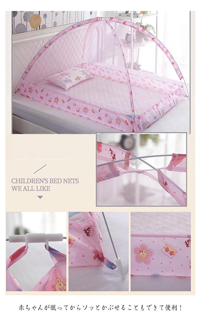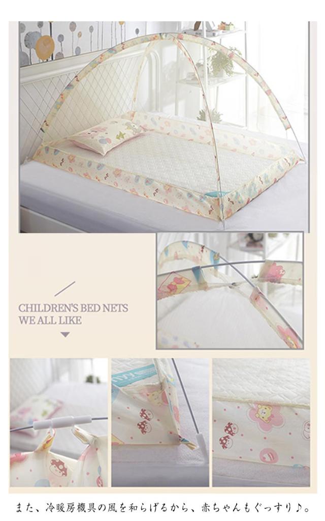 | パッと広がる簡単♪らくらくワンタッチ蚊帳。 害虫から赤ちゃんを守ります。 また、冷暖房機具の風を和らげるから、赤ちゃんもぐっすり♪。 女性やお年寄りにも、簡単ワンタッチなので開閉しやすいです!たためば、コンパクトに! 赤ちゃんが眠ってからソッとかぶせることもできて便利! 蚊取り線香が苦手な方や、生まれたばかりの赤ちゃんに殺虫剤っを近づけたくないという方にもおすすめです。 ご出産お祝いのプレゼントにも喜ばれます! | |