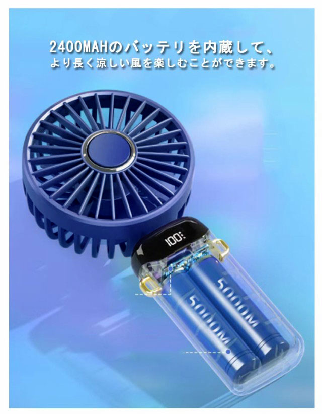 ハンディファン 携帯扇風機 ハンディ扇風機 手持ち扇風機 卓上扇風機 手持ち式 ハンディー 小型扇風機 おしゃれ かわいい ミニ扇風機 コンパクト 長時間 ポータブル扇風機 ポータブルファン 持ち運び 2400mAhバッテリー内蔵 5段階風量調節 USB充電式 ミニファン