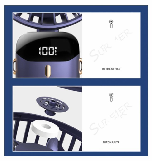 | 【5段階風量調節】【一台3役】【USB充電式】 一台3役の高機能ハンディ扇風機。 手持ち扇風機・卓上扇風機・首かけ扇風機と3通りに活用ができます。 お好みに合わせて5段階の風量調節機能が搭載し、シーンによってご自由で風量を簡単に調節できます。 ハンド部分を折り畳んで卓上ファンとなります。オフィスや自宅でのリモートワークにおすすめです。 付属ストラップを使用したら、両手を使わずに持ち運び扇風機が使える首掛けタイプとなります。 2400mAhのバッテリを内蔵して、より長く涼しい風を楽しむことができます。 電量をデジタルディスプレイに数字で表示、一目で電池残量が見えますので、充電が少なくなったらすぐにわかります。 運転音が静かで就寝時にも音が気になりにくく、アウトドアにも携帯便利な扇風機です。 | |