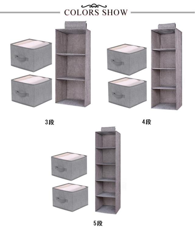吊り下げ 収納ラック クローゼット 収納 ラック 折りたたみ 3段 4段 5段 引き出し付き ハンギングラック 収納箱 収納ボックス 整理ボックス 整理 整頓 衣類 小物 帽子 カバン タオル 下着 靴下 不織布 パイプハンガー 洗える