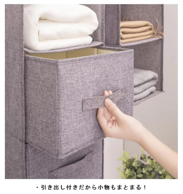 | ・衣類や雑貨の収納など、様々な用途で活躍する吊り下げ型の収納ラック。 ・暮らしになじむクローゼット収納。ハンガーポールに吊るすハンギングタイプで便利! ・引き出し付きだから小物もまとまる! ・本体が折りたたみ式で、使わない時は折りたたんでコンパクトに収納可能で、クローゼットの限られたスペースを有効に活用することが可能です。 ・クローゼットに吊るして、TシャツやYシャツ、セーターなどの衣服だけでなく、カバンや帽子などの収納にも最適。 ・クローゼットやハンガーラックのパイプにマジックテープで巻きつけるだけの簡単設置。 | |