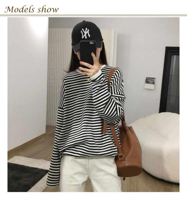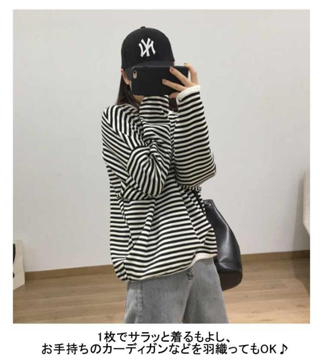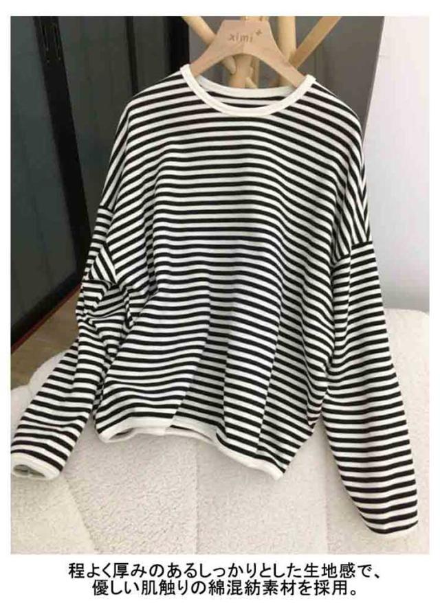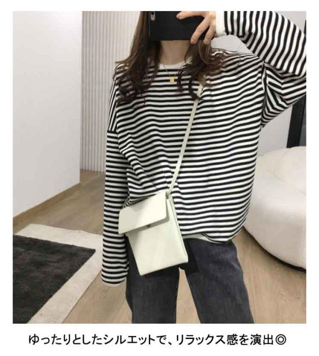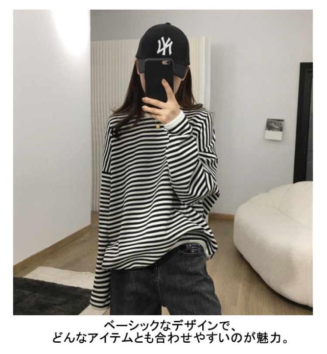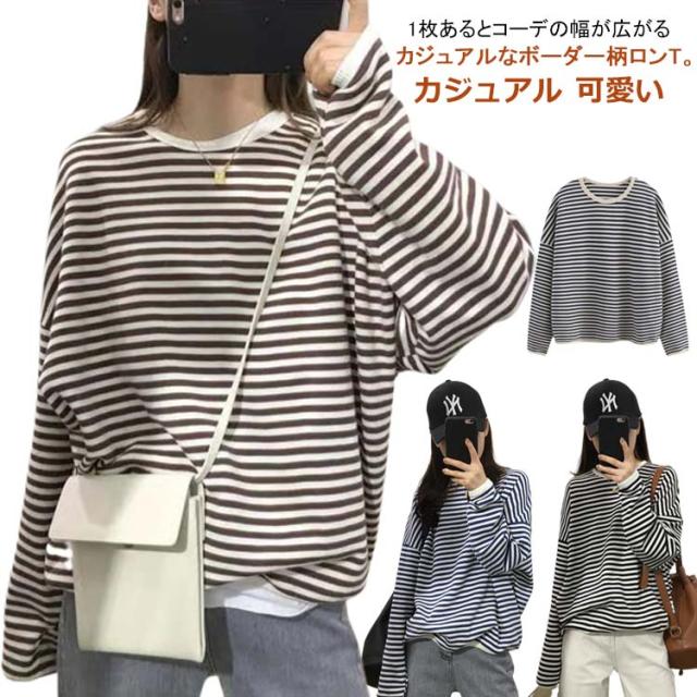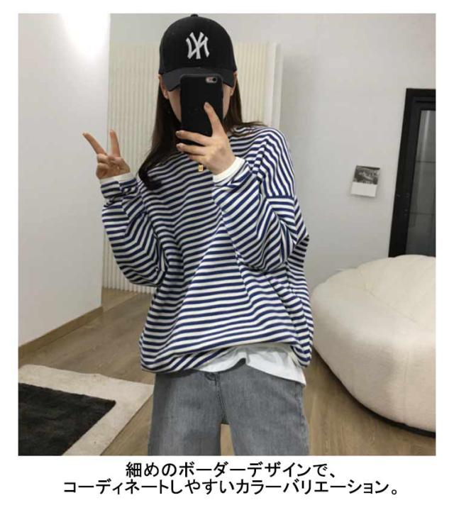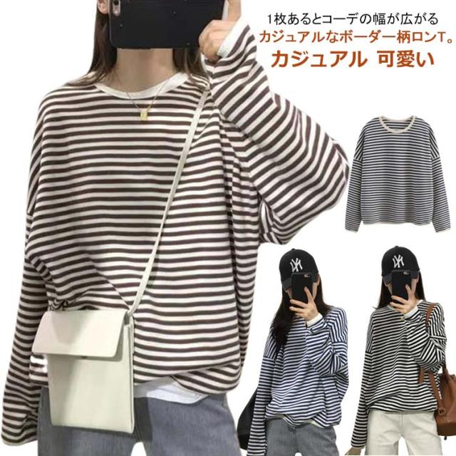 送料無料 カットソー 長袖 レディース ボーダー Tシャツ ロンt プルオーバー tシャツトップス チュニックロングTシャツ オーバーサイズ 無地 インナー クルーネック シンプル コットン ゆったり 大人 カジュアル 可愛い