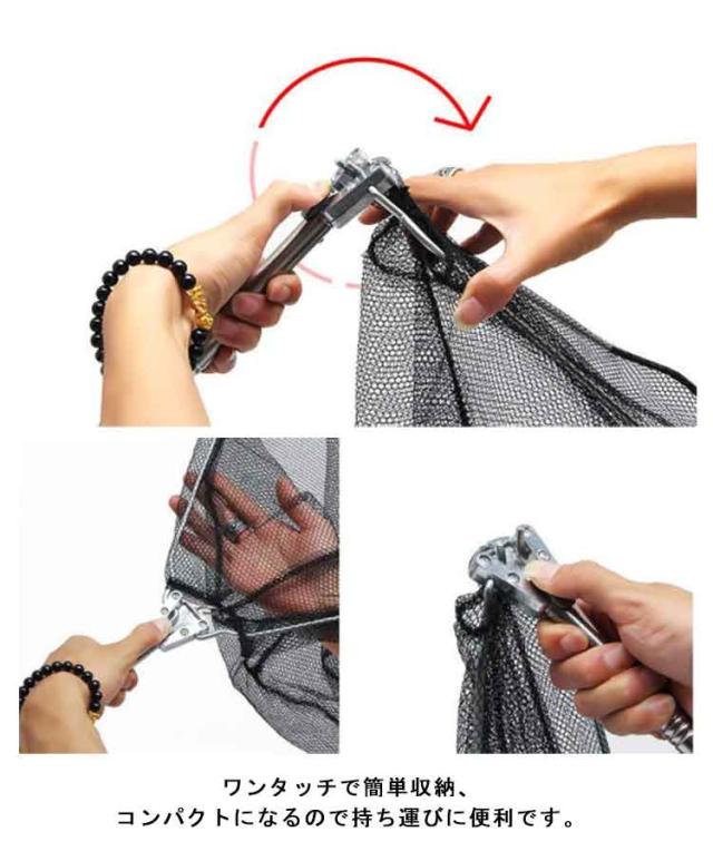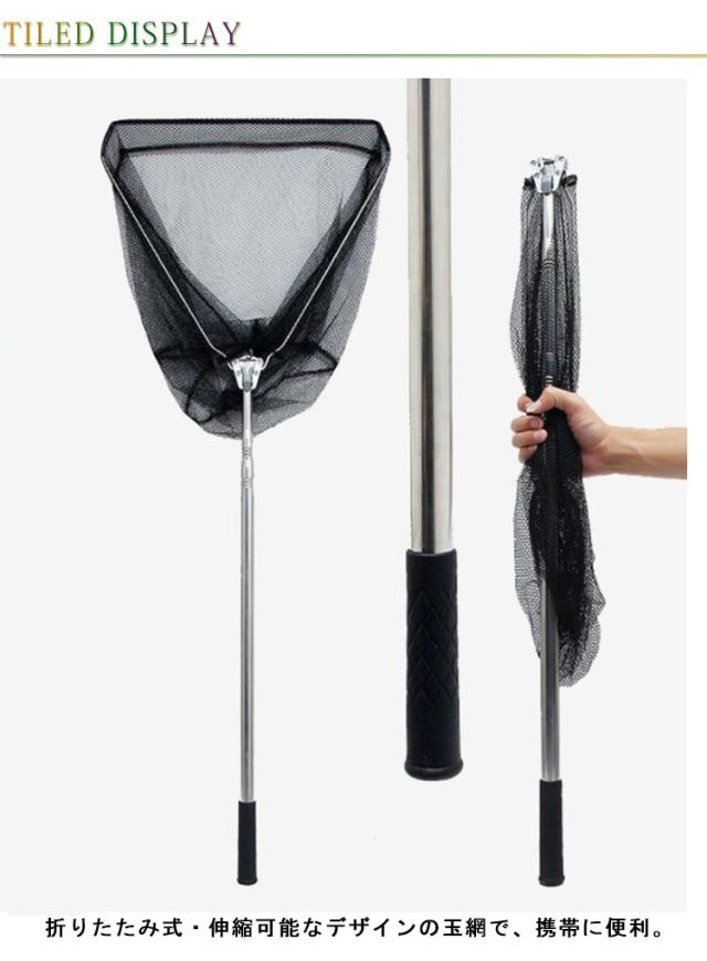 | 折りたたみ式・伸縮可能なデザインの玉網で、携帯に便利。 深めのネット、強度のあるフレームなので、大きな魚でも安心です! 柄はすべり止めグリップ付きで使いやすいです。 ステンレス製で耐久性があるのに軽量です。 ワンタッチで簡単収納、コンパクトになるので持ち運びに便利です。 長さ3段階調整可能で高い堤防でも使用できます。 海・山・川・池・湖 どこでもOK! | |