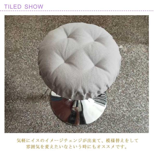 | 座面に被せるだけの手軽さでお尻の痛みを和らげられる。丸椅子カバー。 周囲にゴム入りでしっかりと丸椅子を固定できます。 座面にかぶせるだけの簡単取りつけ! 中綿入りなので長時間座っていても疲れにくく、一度使うとやみつきになるような快適な座り心地。 気軽にイスのイメージチェンジが出来て、模様替えをして雰囲気を変えたいなという時にもオススメです。 | |