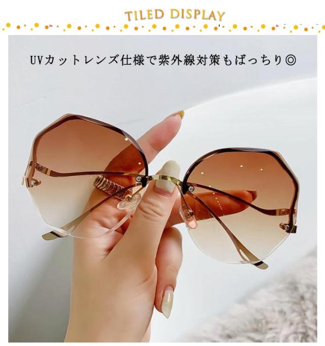 サングラス レディース UVカット 眼鏡 メガネ 縁なし フチなし おしゃれ グラデーション カラーレンズ めがね 紫外線対策 UVカット ドライブ 運転アウトドア 野球 スポーツ オールシーズン 軽量 送料無料