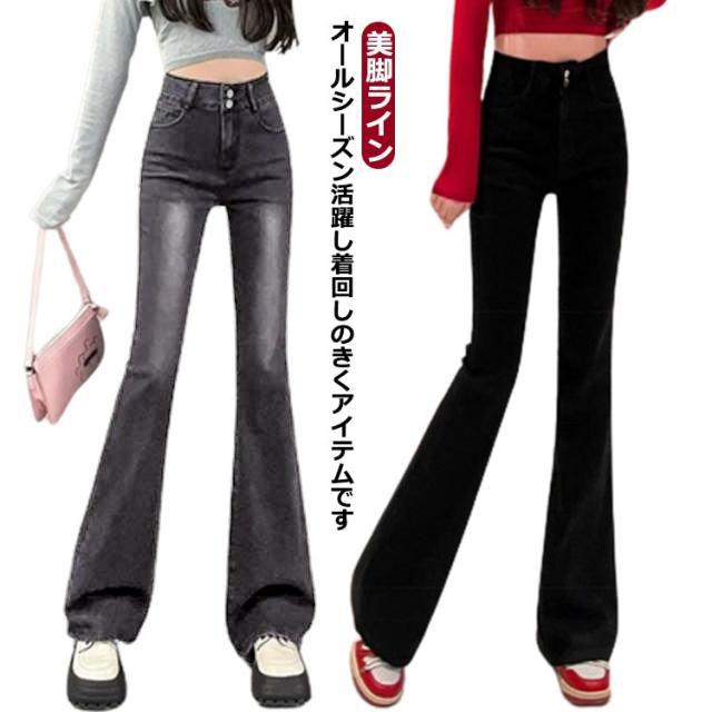 デニム フレアパンツ フレアデニム ブーツカット レトロ レディース 美脚ライン 薄手 ストレッチ 脚長効果 韓国 おしゃれ 春 夏 秋 スリム ポケット 着脱 楽 無地 シンプル カジュアル オフィス 普段着 通勤 通学 レディース 20代 30代 40代 50代