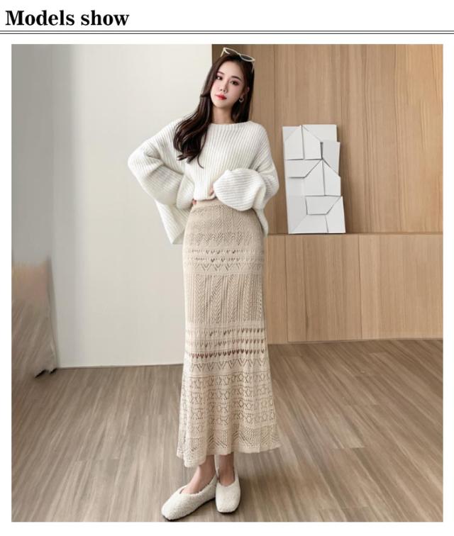 マーメイドスカート 透かし編み かぎ編み クロシェ編み ロングスカート ロング丈 膝下スカート レース ウェストゴム シースルー キレイめ オフィスカジュアル 入卒式 結婚式 セレモニー エレガント マキシ丈 スカート 春夏 秋冬