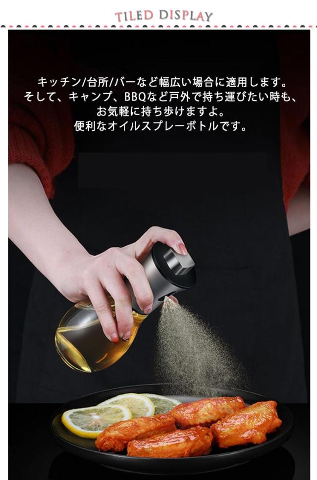 | スプレーになるので、油を均一的に霧吹くことが可能です。 過度な油分摂取を抑えることができますので、油分を気にする場合やダイエットには効果的です。 【色んなシーンで大人気】キャノーラ油、大豆油、サラダ油、オリーブオイルなど市販食用油はほとんど全種類適用します。 キッチン/台所/バーなど幅広い場合に適用します。そして、キャンプ、BBQなど戸外で持ち運びたい時も、お気軽に持ち歩けますよ。便利なオイルスプレーボトルです。 【使い勝手が良い】スプレーボトルにはプッシュするだけでミストを微細に分散させて、スムーズにスプレー効果も得られます。更に、加圧式霧吹きではなく、何度もプッシュする手間が省けるため、圧倒的に効率がアップします。細かいスプレー効果になるので、油をムラなく吹き付けることが可能です。 【ガラス製でお手入れ簡単】透明なガラス製で、プラスチックに比べると表面の汚れが落としやすく、食器洗い用洗剤で簡単に綺麗にできるので、お手入れがしやすいのも。耐熱ガラスですので、うっかり火のそばに置いてしまっても安心です。 | |