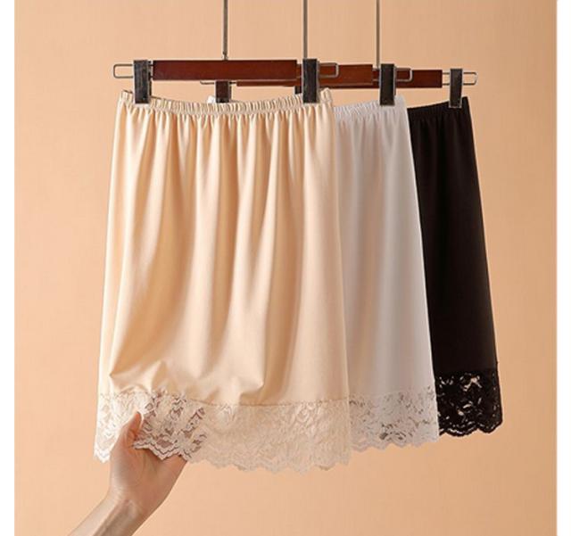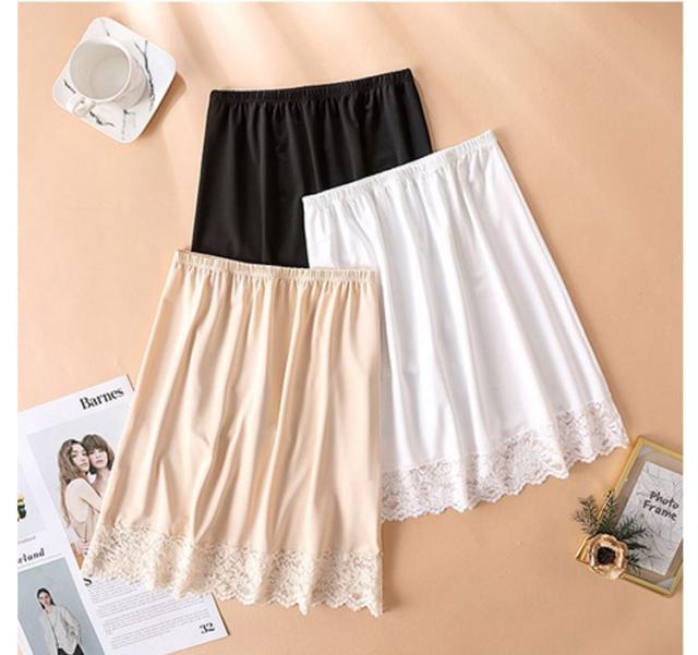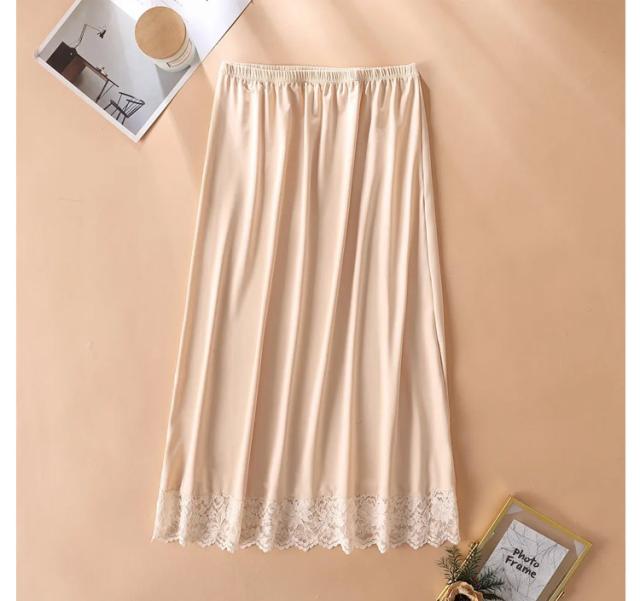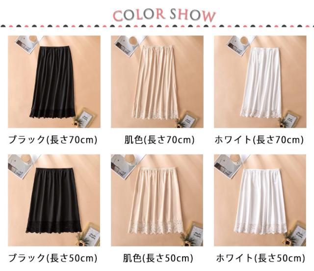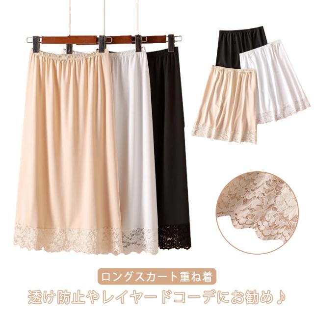 | 透け防止やレイヤードコーデにお勧め♪ 着回しに活躍するミモレ丈レースペチコート。 裾レース付きタイプと無地シンプルなタイプ展開で、コーディネートを上品にまとめてくれます。 ウエストは良く伸びるゴム仕様なので 苦しさもなく、楽ちんにご着用頂けます。 | |