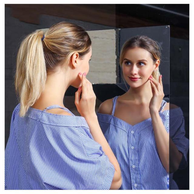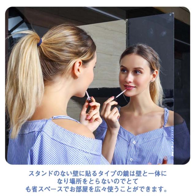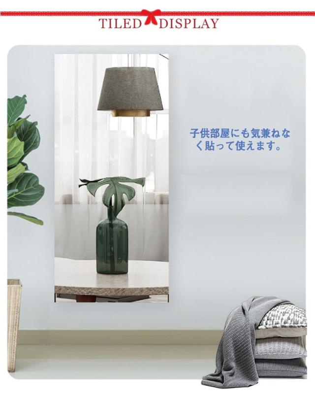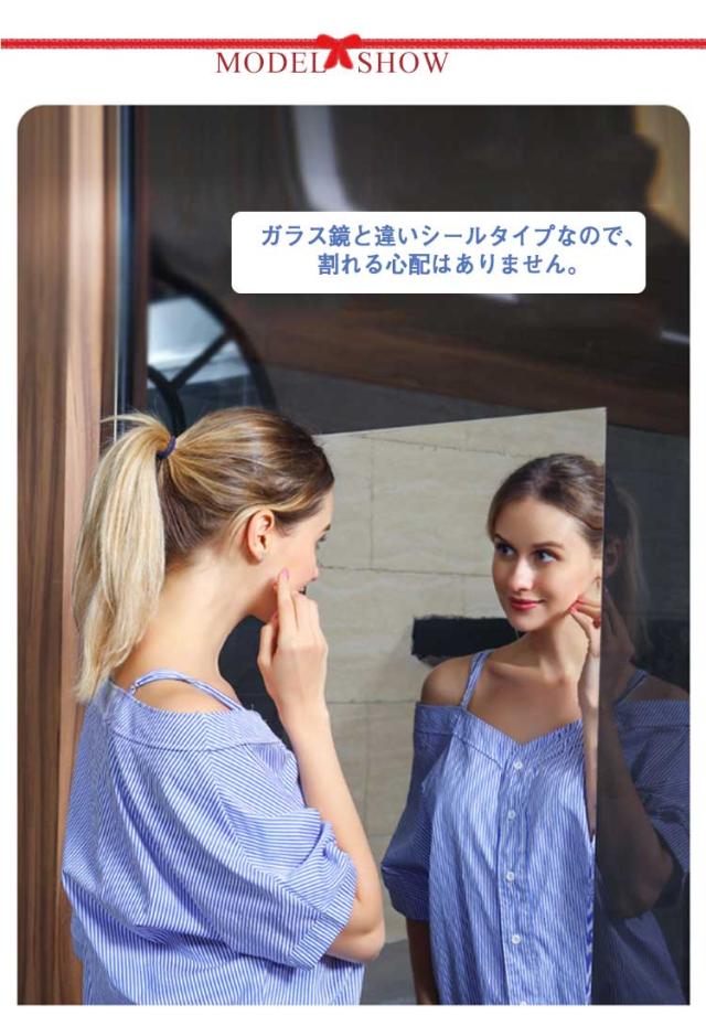 | ガラス鏡と違いタイプなので、割れる心配はありません。【50×150cm】【剥がせる?賃貸OK】 万が一はがれて落ちても、ガラスのように砕ける事もナシ! 子供部屋にも気兼ねなく貼って使えます。 壁に穴を開ける必要もないので、賃貸住宅でもお使い頂けます。 裏面は粘着面になっているのでテープや接着剤も必要ありません。 滑らかな壁、ラテックスの壁、ガラスの壁や木製ドアに設置OK。 スタンドのない壁に貼るタイプの鏡は壁と一体になり場所をとらないのでとても省スペースでお部屋を広々使うことができます。 玄関、寝室、廊下、バスルームなど、部屋内に様々なところでお使い頂けます。毎日お出掛けにする時の身だしなみチェックも楽しむことができます。 | |