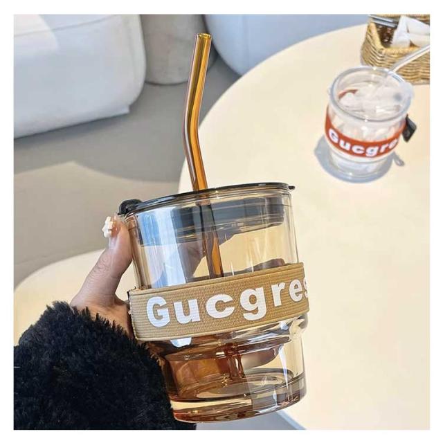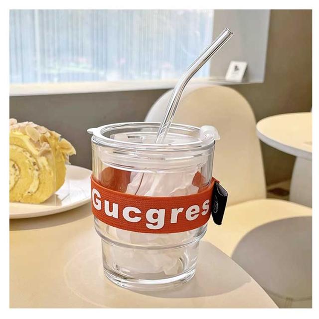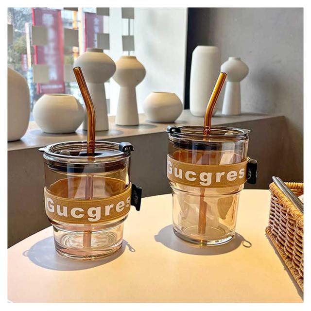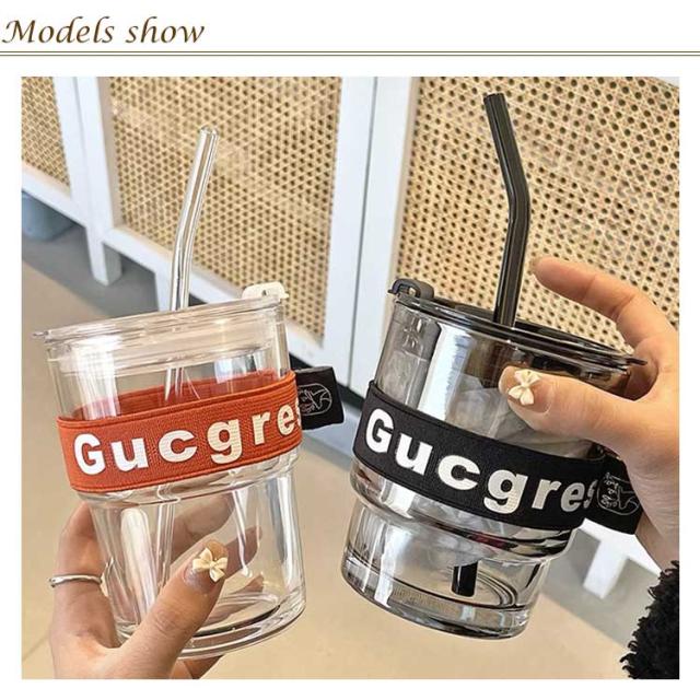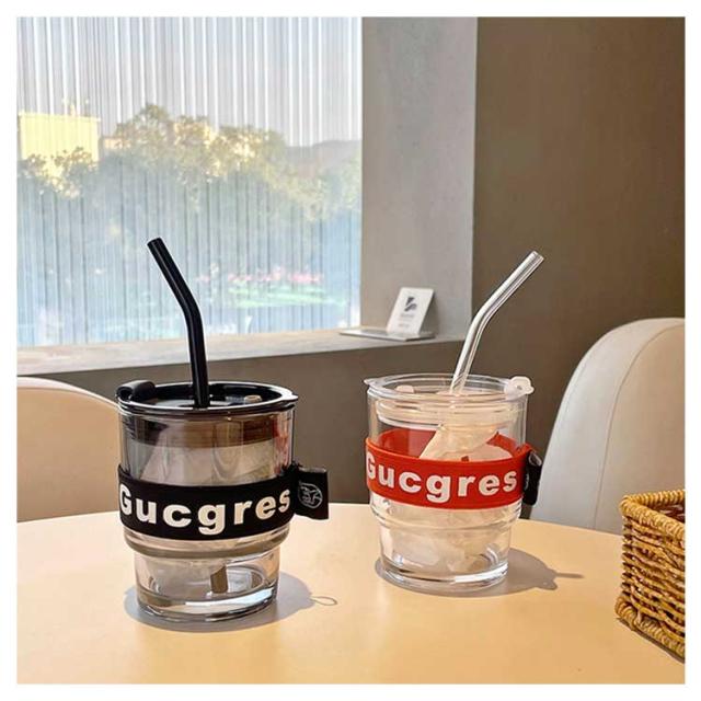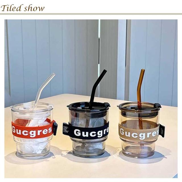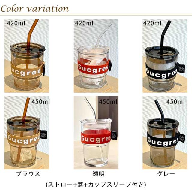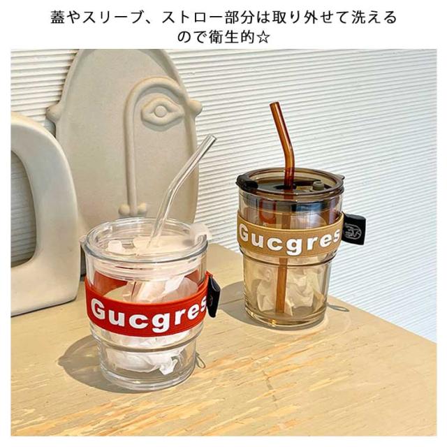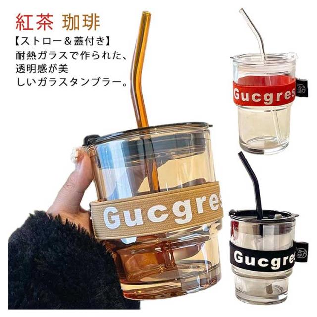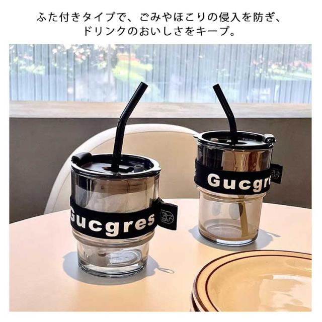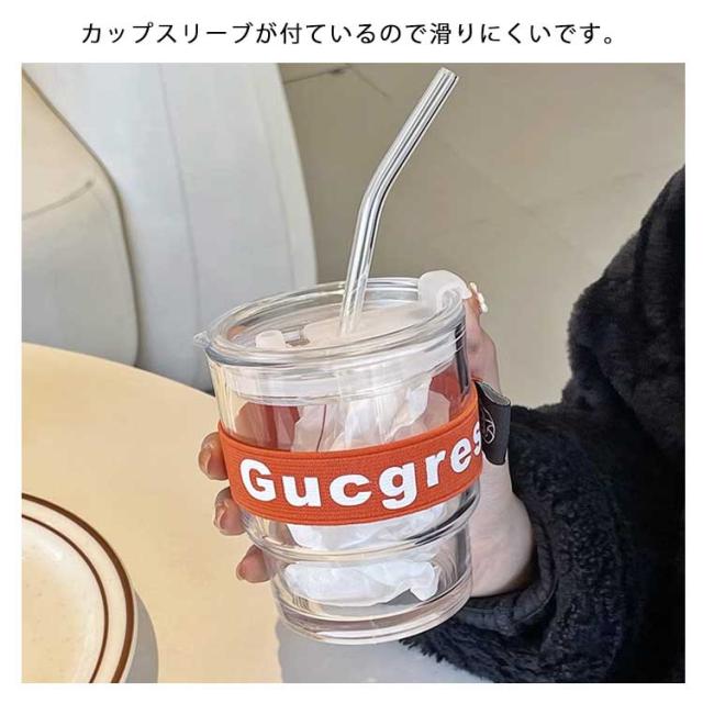 ガラスタンブラー ストロー 蓋付き ガラスコップ タンブラー 耐熱ガラス コーヒーコップ 軽量 ふた付 フタ付き ボトル 紅茶 珈琲 ドリンクボトル ガラス製 スリーブ付 持ちやすい プレゼント