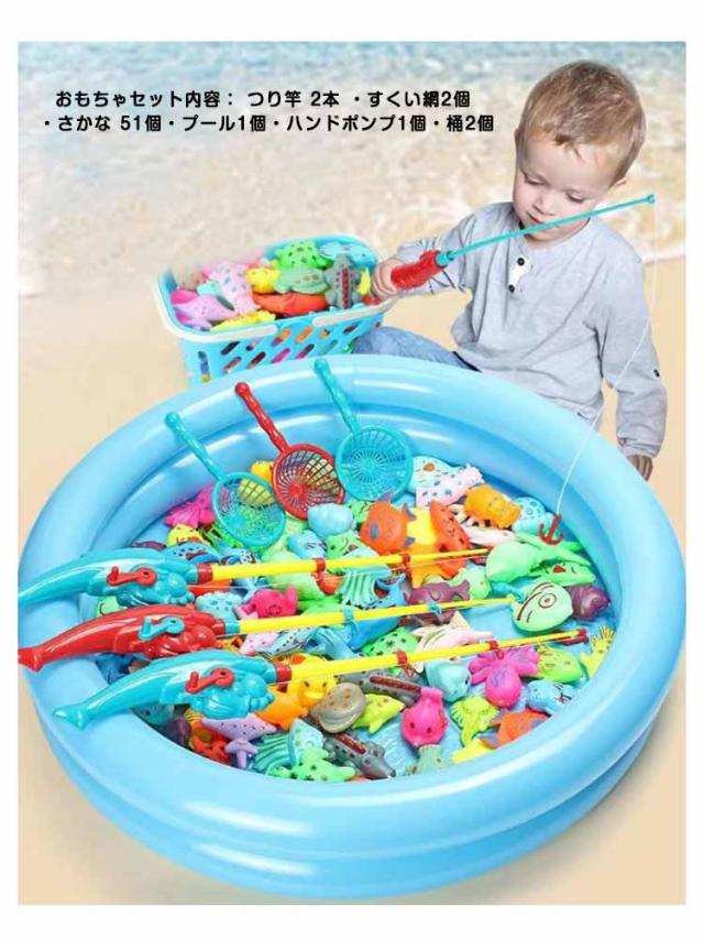 | 魚釣りゲームは遊びながら学べる知育玩具です おもちゃセット内容: つり竿 2本 ・すくい網2個 ・さかな 51個・プール1個・ハンドポンプ1個・桶2個 伸縮する竿でリールが回せる本格的な楽しさ。 伸縮タイプの竿と磁石でたのしく魚釣りゲーム。 様々なカラーリングで脳の活性化。子供の集中力アップ! 保育園や幼稚園はもちろん、老人ホームやイベント、お祭り、行事ごとなどに大活躍 | |