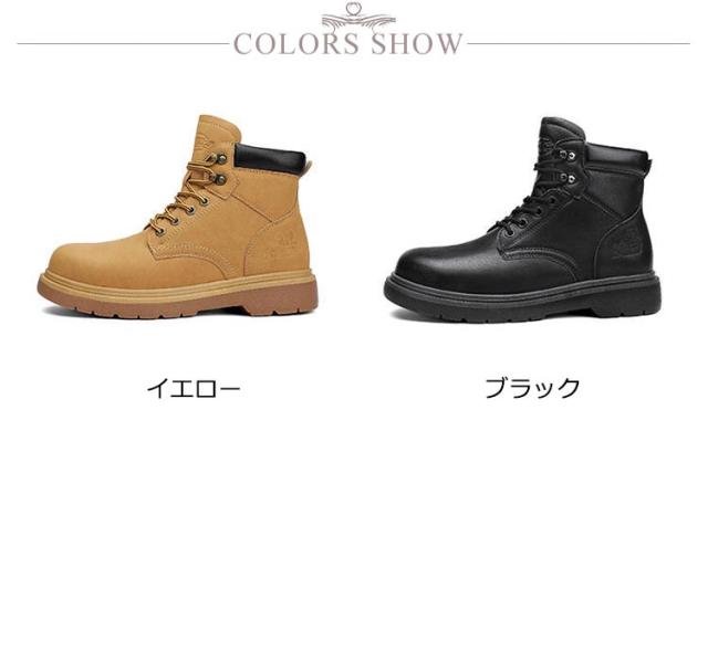 | これなら作業服でも私服でもOKな感じ! ブーツ風の安全靴です! ものすごく人気の高い商品で、安全靴としてではなくリーズナブルなかっこいいブーツとして! 【安全性能】1.つま先保護:つま先部分に鋼製の先芯を入れた、金槌や刃物などからつま先を保護できます。2.足裏保護:靴底は防弾材料ケブラー繊維ミッドソールが入れた、釘などの鋭いものから足裏を守ります。 【防水性】靴底から高さ約3cm、雨の日の水溜りも安心して歩けます。突然の雨でもしっかり対応できます。孔は水滴より小さく、水蒸気の分子より大きいので、水はとおさ通さず汗の湿気を外に放出します。 【高耐久性】高耐久性のゴム製は長時間の摩擦にも壊す難い、スムースの作業場に仕事集中できます。靴底のソールは耐油・耐滑仕様でグリップ性があり、滑りやすい現場にもお勧めです。 | |