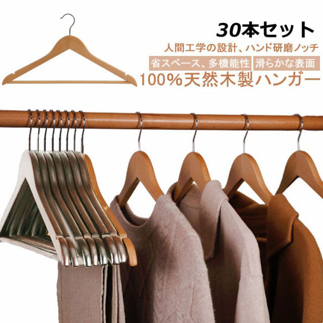30本セット!ハンガー 肩 跡がつかない 木製 すべらない スリムハンガー 洗濯ハンガー おしゃれ ハンガーセット 滑り落ちない かわいい 型崩れ防止 丈夫 物干し ズボン スーツ シャツ 送料無料