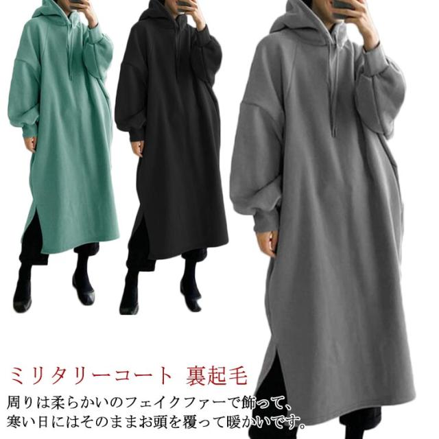 アウター 裏起毛 コート ミリタリーコート レディース ミリタリー ロングコート モッズコート ロングパーカー ロング 大きいサイズ ビッグシルエット ミリタリージャケット ジップアップ 無地 シンプル 極暖 カーキ 黒 秋 夏