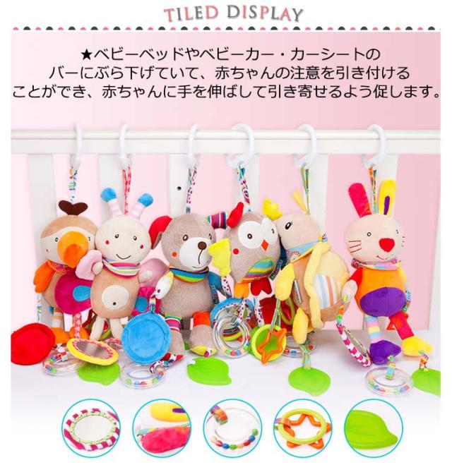 | ★カラフルな色合いやかわいい図柄で、お子様の五感を刺激し、好奇心や探求心を促します。 ★ベビーベッドやベビーカー・カーシートのバーにぶら下げていて、赤ちゃんの注意を引き付けることができ、赤ちゃんに手を伸ばして引き寄せるよう促します。 赤ちゃんに楽しんでもらい、子供たちに幸せな一日を過ごさせましょう。 ★材質は無毒性で安全です。そして、おもちゃによって設計され、様々な生地や色を使用します。カラーの認識能力を育ちます。 | |