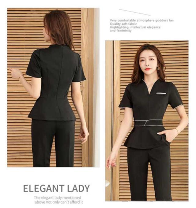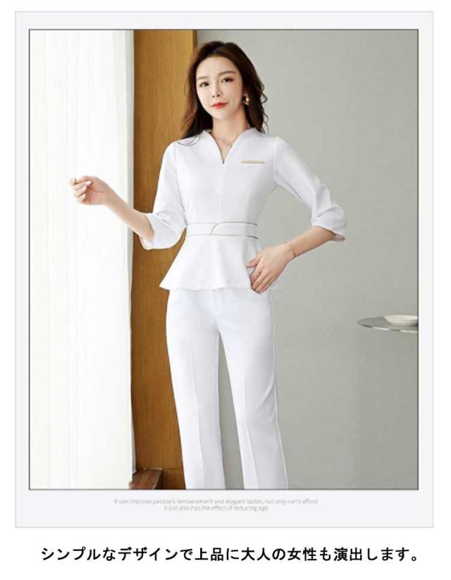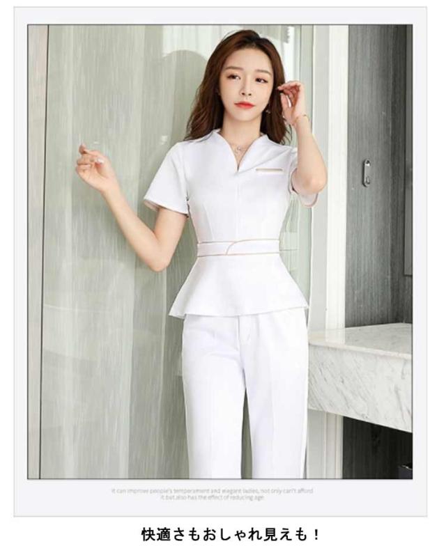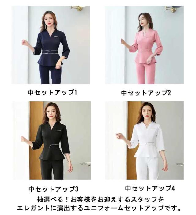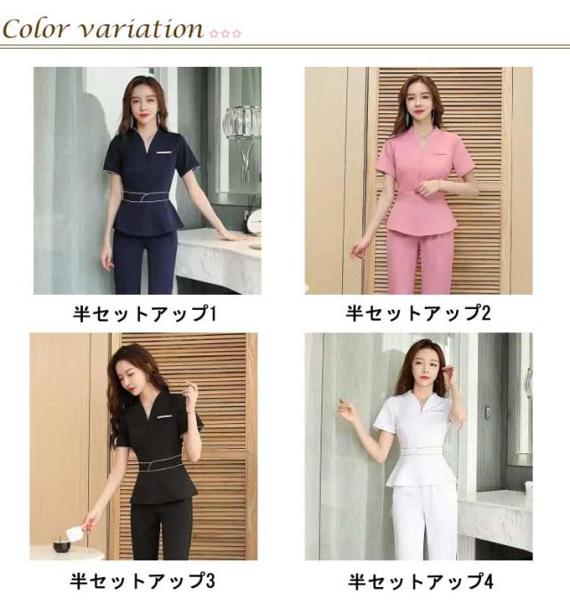 袖丈選べる!ユニフォーム エステ 白 サロン通勤 レディース 女性 制服おしゃれ 半袖 七分袖 ネイル 美容 サロン 歯科衛生士 制服 大きいサイズ パンツ 半袖 エステユニフォーム セットアップ 2点セット 美容 サロン 歯科衛生士 黒 紺 S M L XL 2XL 3XL 4XL