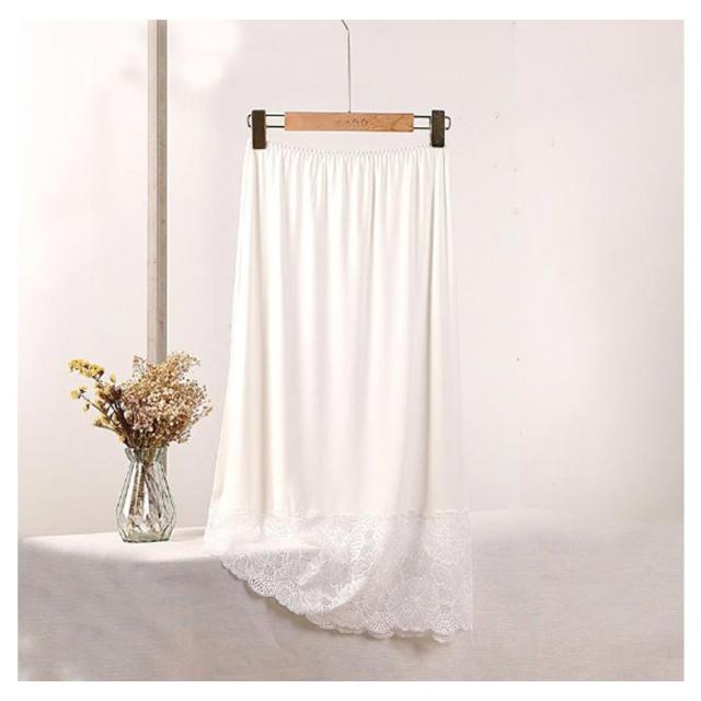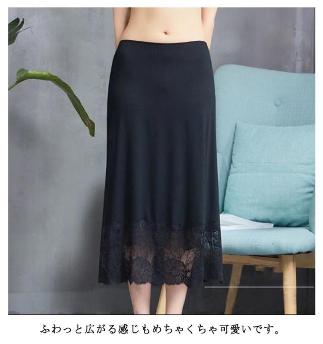 刺繍 ペチコート レース ペチ コート インナー スカート レーススカート レディース ロング丈 膝下丈 ミモレ丈 ロングスカート ウエストゴム ドレスインナー キレイめ 大人可愛い インナースカート 裾レース 重ね着 レイヤード