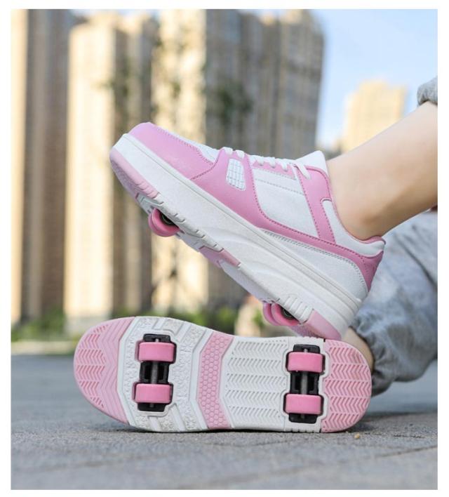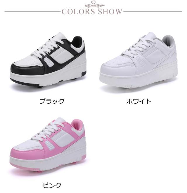 送料無料 ローラーシューズ ローラースケート 4輪 キッズ 大人 子供 スニーカー靴 レディース靴 女の子 男の子 子供用運動靴 スポーツ スニーカー 4輪式 ブラック ホワイト ピンク 20.5cm〜25cm