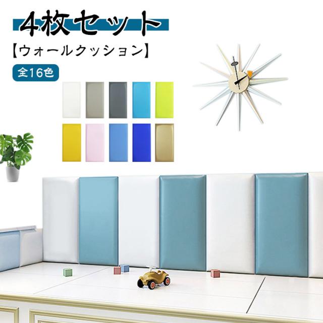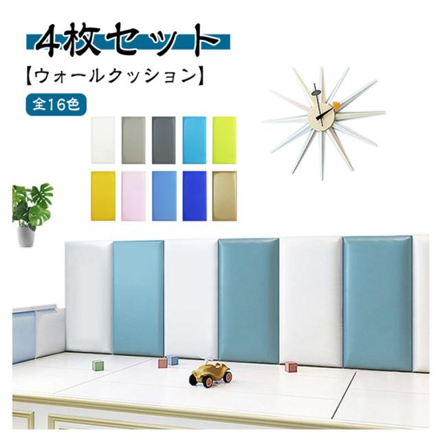 ウォールクッション 4枚セット 壁クッション ケガ防止 衝撃吸収 キッズ ベビー 学校 ベビーガード セーフティーグッズ 幼稚園 保育園 クッションマット 自宅用 店舗 防水 ソフト 壁紙 厚手 壁マット 安全マット 防音 遊び場 プレイルーム コーナークッション 送料無料