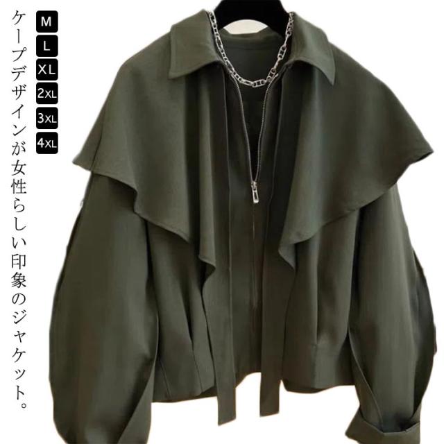 ジャケット レディース ケープジャケット ポンチョジャケット ブルゾン 長袖 ミリタリージャケット アウター ポンチョコート ケープコート スプリングコート ゆったり オーバーサイズ 大きいサイズ ライトアウター 無地 カジュアル きれいめ かわいい 春秋 秋服 送料無料