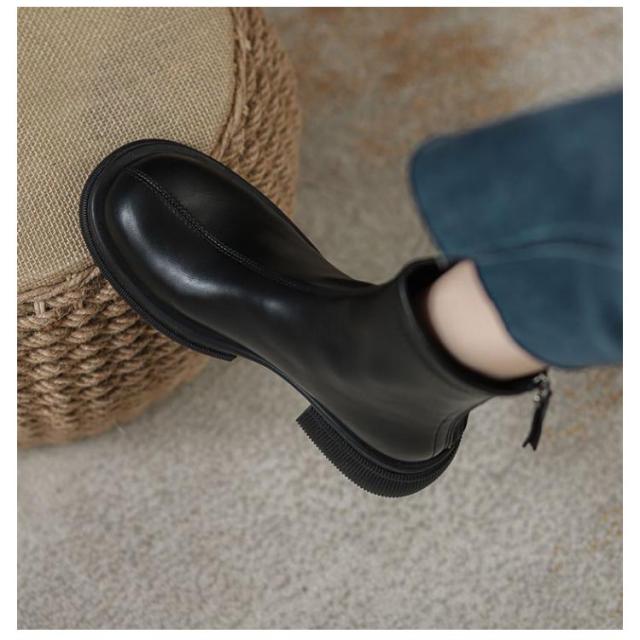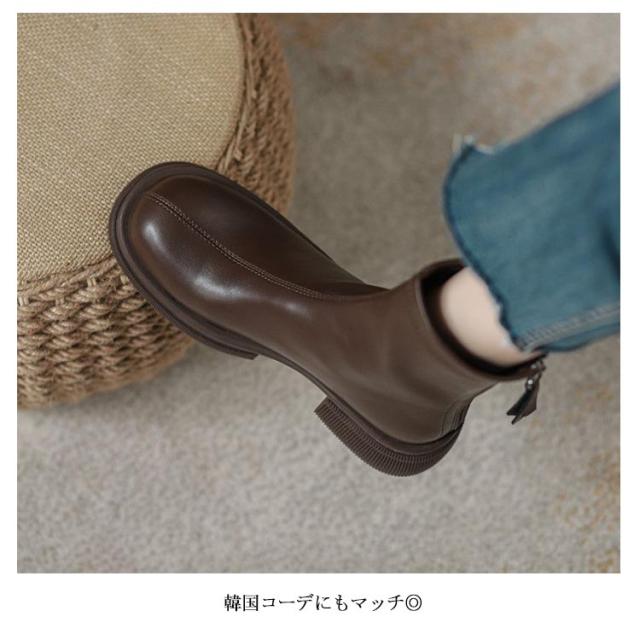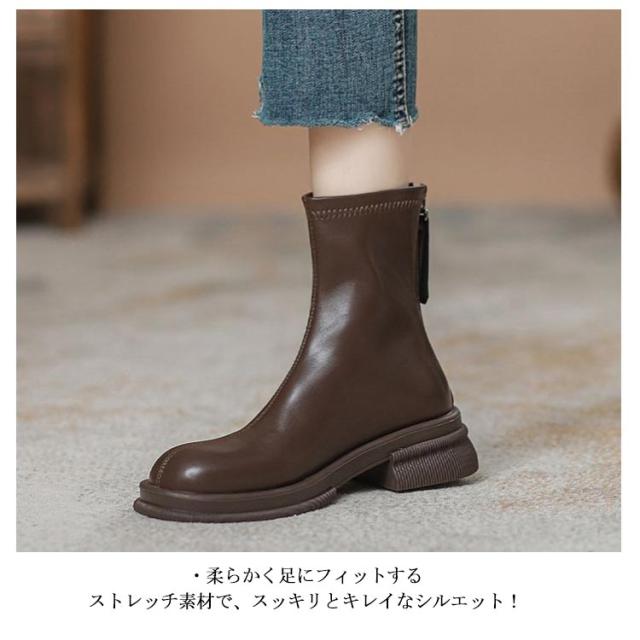 シューズ フラット ブーツ レディース スクエアブーツ フラットブーツ ショートブーツ ローヒール 裏起毛 靴 ファスナー 4.5cmヒール 太ヒール 歩きやすい 韓国 ブラック 黒 秋冬 カジュアル お洒落 疲れにくい シンプル
