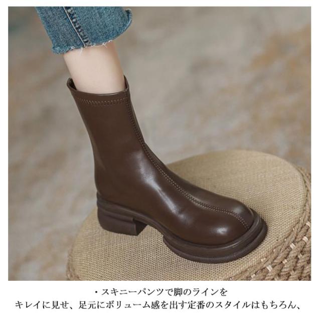 | 厚底ストレッチショートブーツ ・ゴツめデザインで足元にボリュームを持たせ、伸縮性のあるストレッチ素材が足にフィットし引き締まって見えるので、スタイルアップが期待できるアイテム。 ・柔らかく足にフィットするストレッチ素材で、スッキリとキレイなシルエット! ・スキニーパンツで脚のラインをキレイに見せ、足元にボリューム感を出す定番のスタイルはもちろん、 ガーリーやフェミニンスタイルにあえてゴツめの厚底デザインで外すことでコーデをピリッと引き締しめる甘辛ミックスコーデにもオススメ。 韓国コーデにもマッチ◎ ・シンプルデザインの絶妙な丈感でスカートにもパンツにもバランス良く合わせやすく大人っぽいコーデに仕上がる。 | |