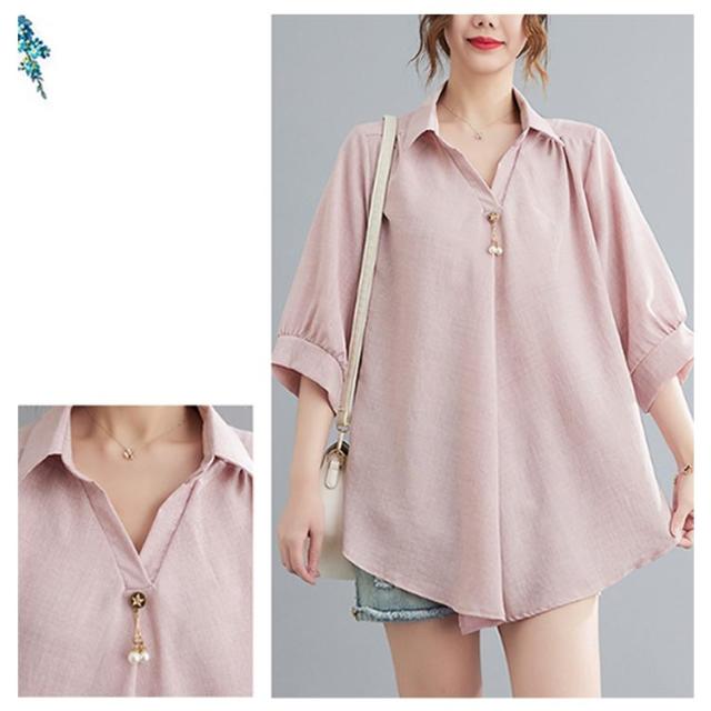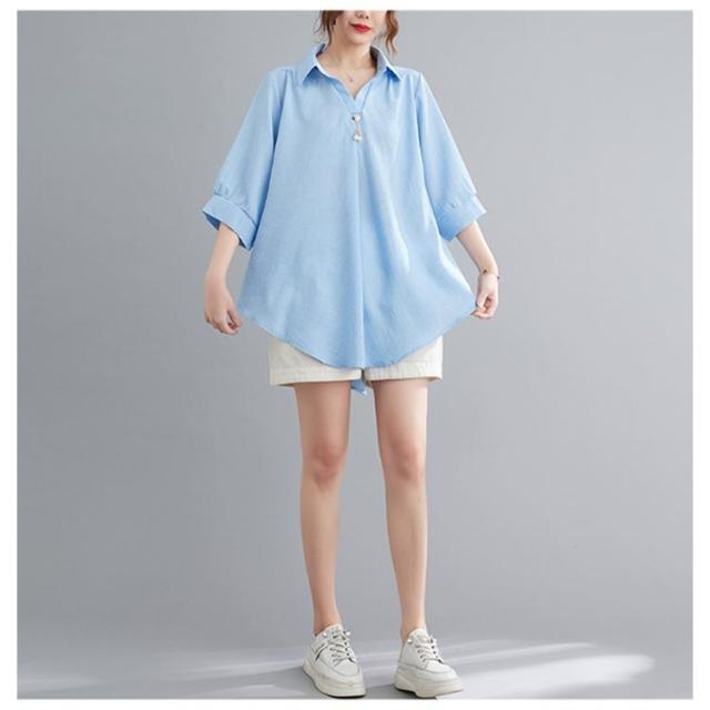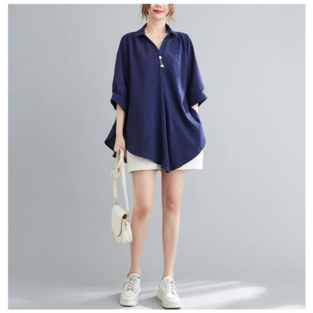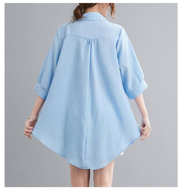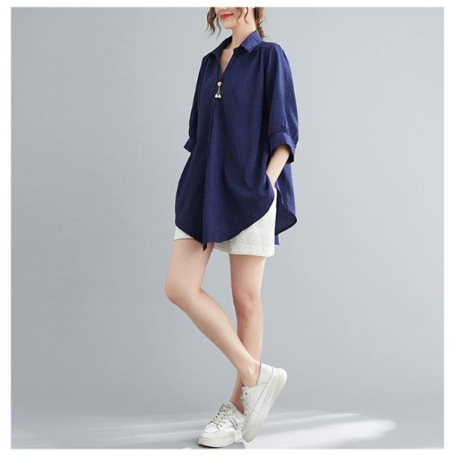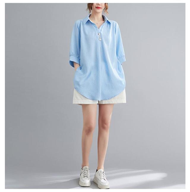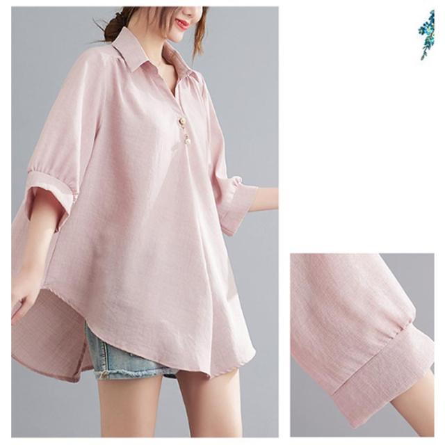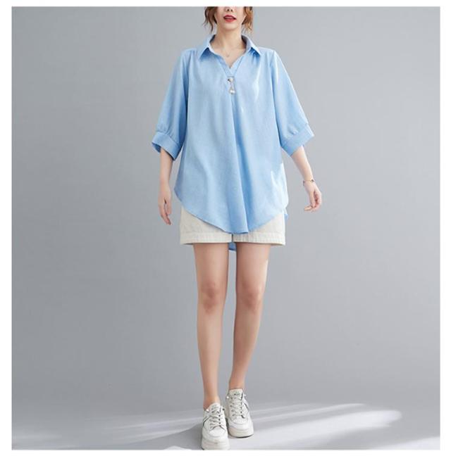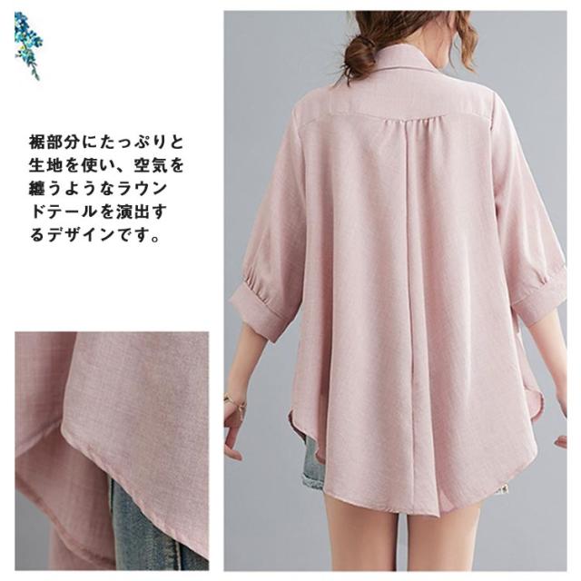 チュニック シャツ ブラウス レディース ギャザー フレアブラウス ロングシャツ 半袖シャツ ブラウス トップス 五分袖 大きいサイズ vネック ロング丈 シャツチュニック 通気性 薄手 春 秋 送料無料 ブルー ホワイト レッド ネイビー イエロー ブラック ピンク