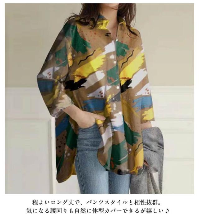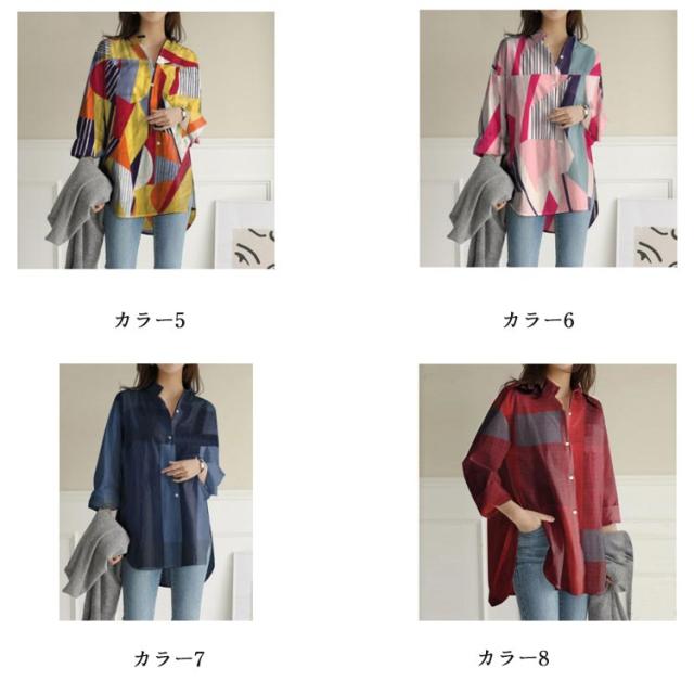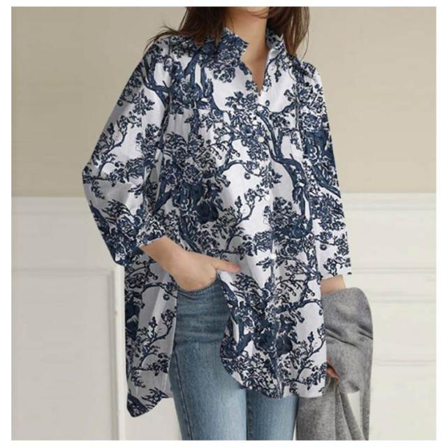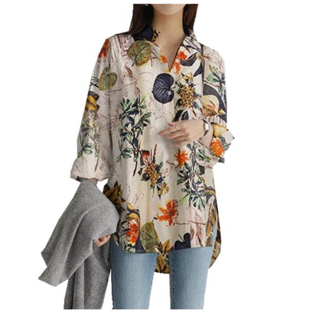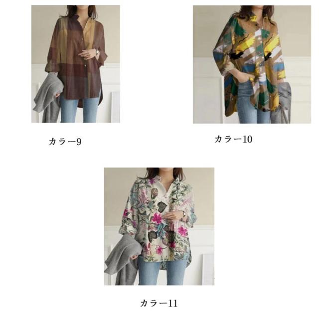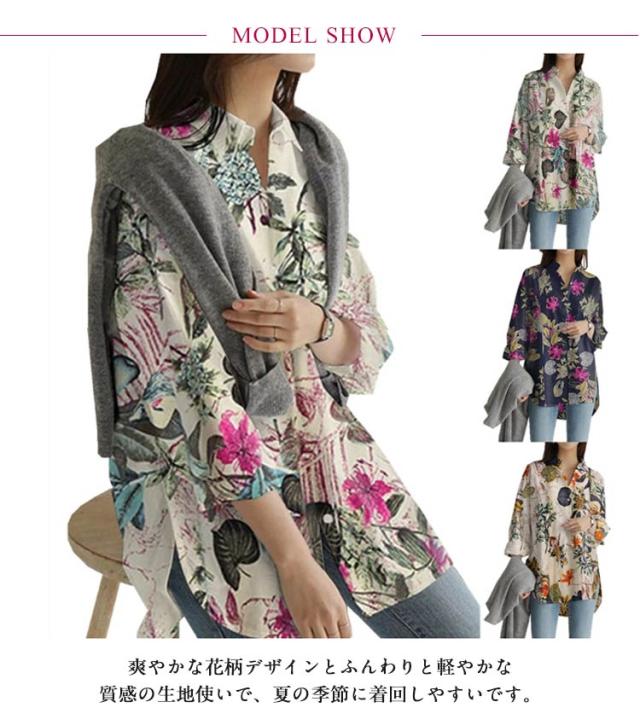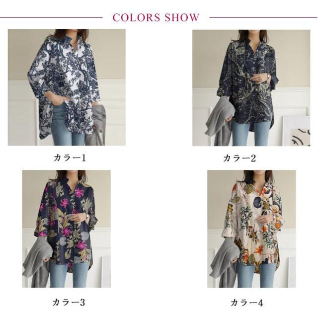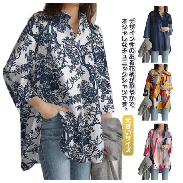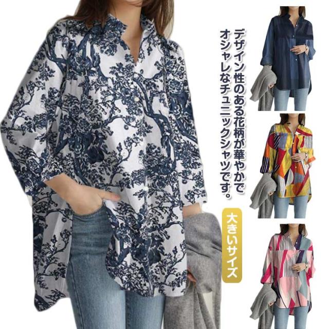 シャツ ブラウス レディース 長袖 花柄 チュニック ロング丈 ブラウス シャツ 総柄 襟付き カジュアル 春 夏 秋 大人可愛い ナチュラル レトロ柄 小花柄 フラワー おしゃれ ゆったり 大きいサイズ 森ガール エレガント 送料無料