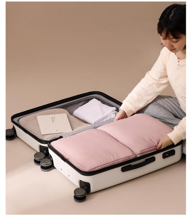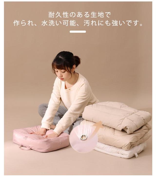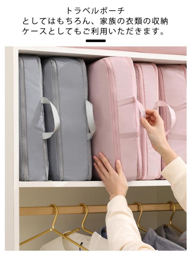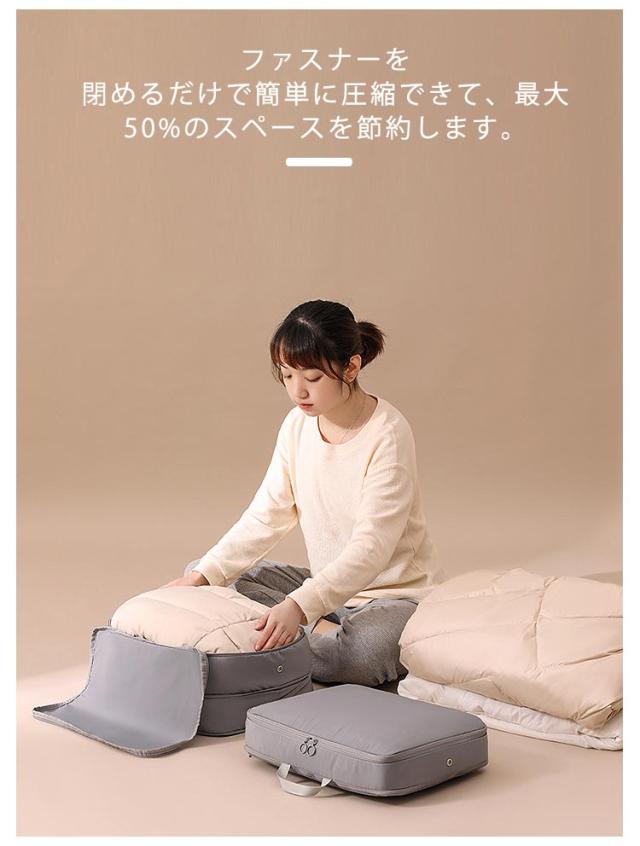 | 荷物をよりコンパクトに!様々な収納ニーズに満足できる圧縮袋。 ファスナーを閉めるだけで簡単に圧縮できて、最大50%のスペースを節約します。 耐久性のある生地で作られ、水洗い可能、汚れにも強いです。 トラベルポーチとしてはもちろん、家族の衣類の収納ケースとしてもご利用いただきます。 収納が苦手な方でも簡単に整理して綺麗に旅に出ることができます。 | |