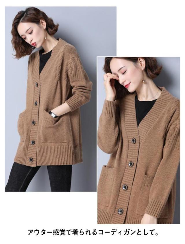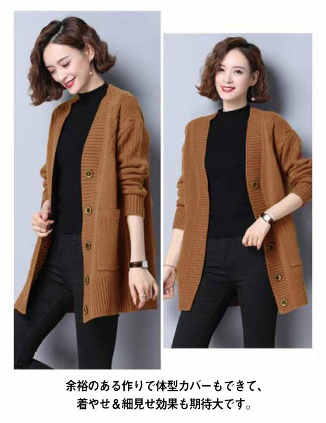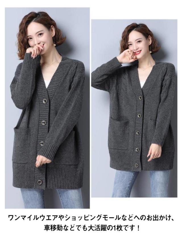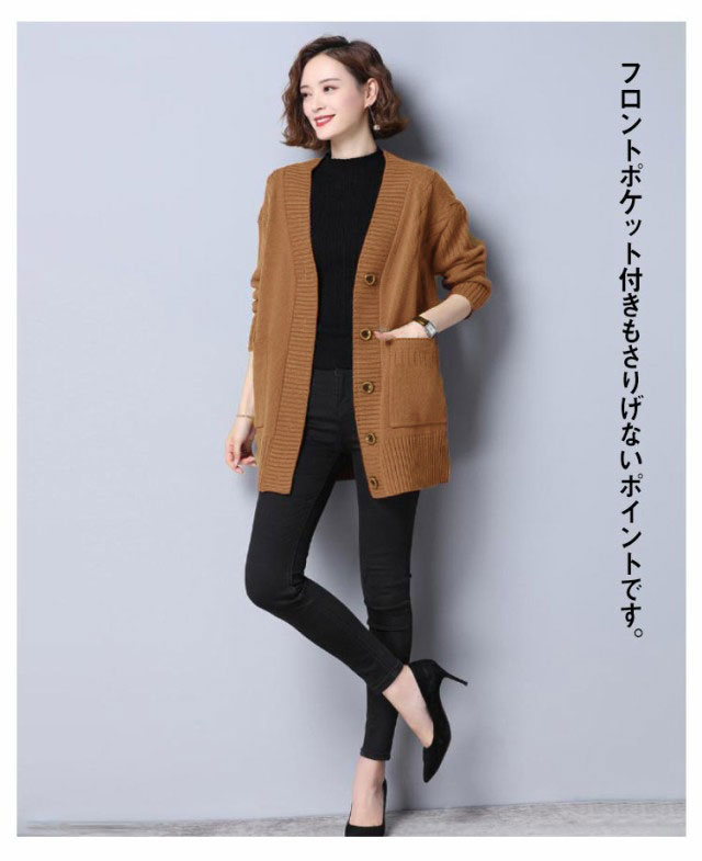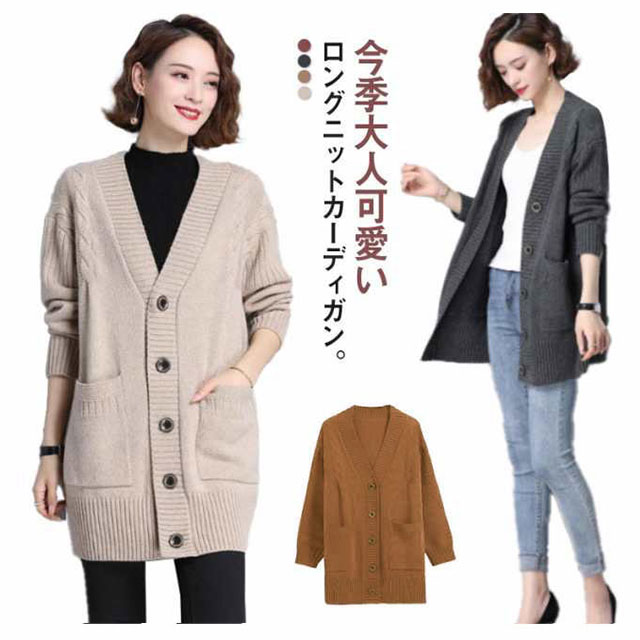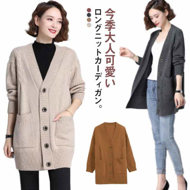 カーディガン トップス ニット レディース ニットカーディガン 送料無料 厚手 ロングカーディガン ゆったり ポケット付き コーディガン ロング丈 アウター 大きサイズ 30代 40代 50代