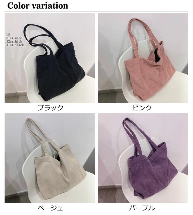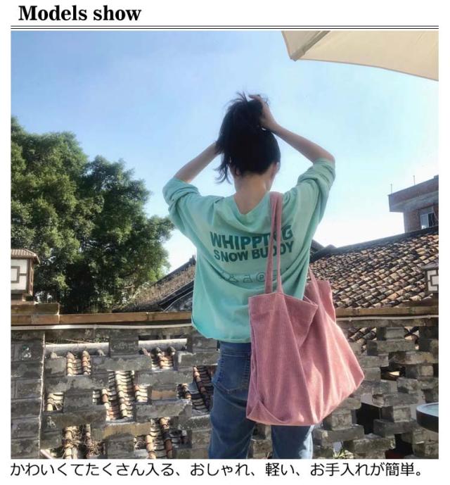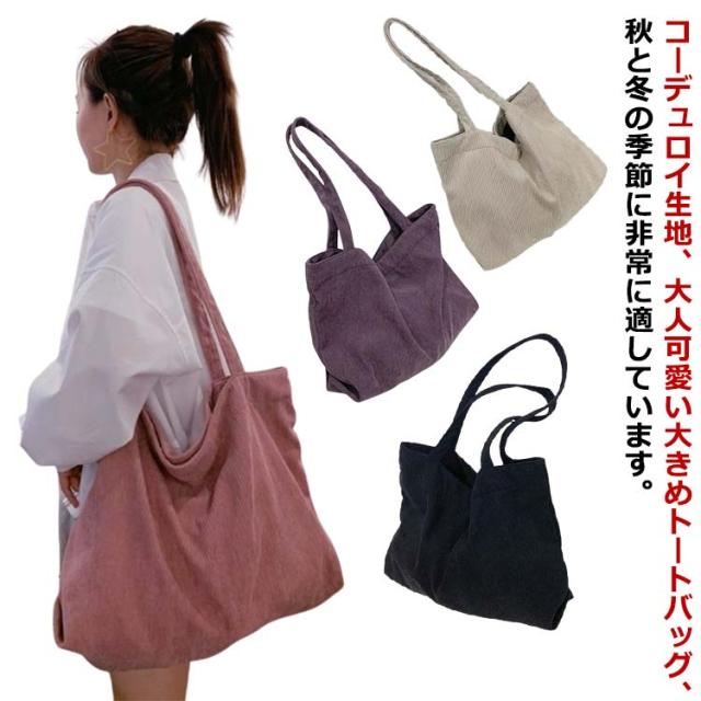 トートバッグ ショルダーバッグ レディース カジュアル コーデュロイ 軽量 大容量 旅行カバン 通学 通勤 おしゃれ かわいい 大きめ 軽い 大きい マザーズバッグ 春 夏 秋 冬