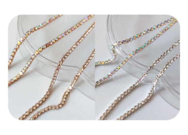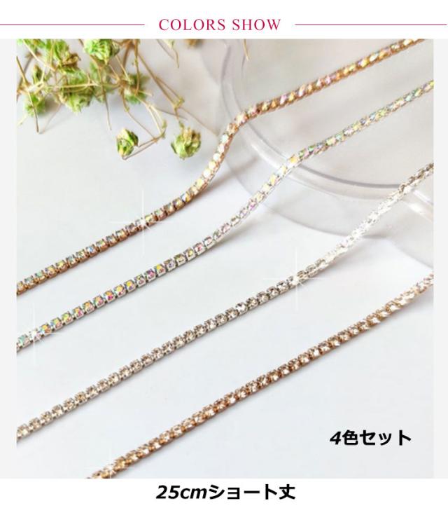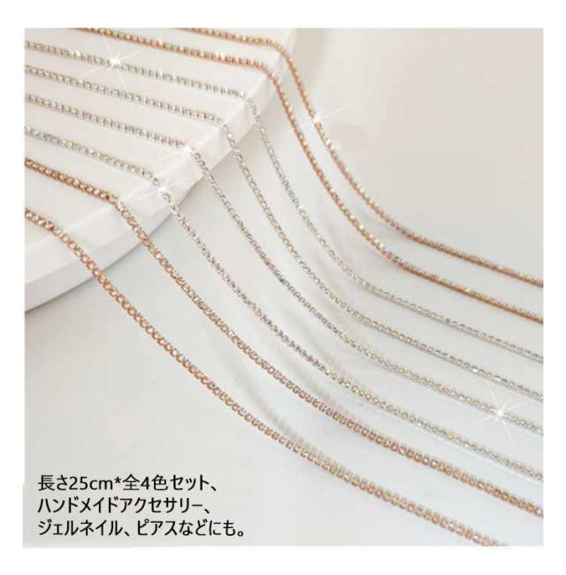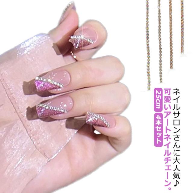 ネイルパーツ 25cm ネイルチェーン 4本セット 連爪チェーン クリスタルストーン ラインストーンチェーン ガラスストーン ジュエリーネックレス フレンチネイル ゴールド シルバー 送料無料 ジェルネイル デコパーツ セルフネイル ジェルネイル