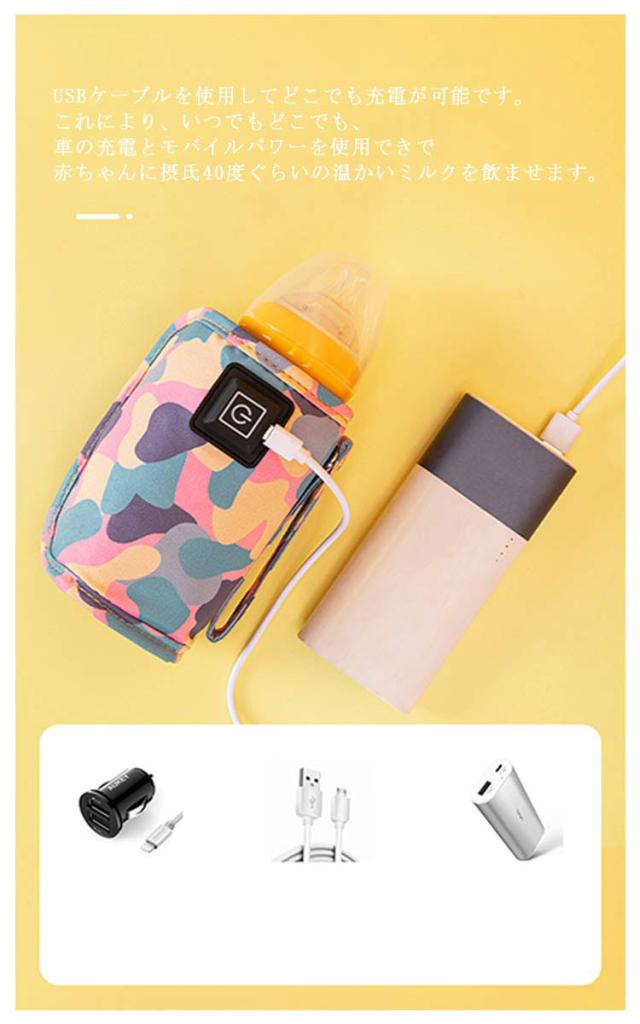 | 軽くてコンパクトな哺乳瓶用のボトルウォーマー。 【保温性に優れで赤ちゃんが健康に成長できる】赤ちゃんの胃は未熟で非常に壊れやすいため、冷たい乳児粉ミルクを飲むのには適していません。哺乳瓶ウォーマーは乳児粉ミルクの温度を約40℃に維持する。高品質な加熱素材を採用しています。ま赤ちゃんを健康に成長させましょう。 【持ち運びが便利でどこでも使用できます】保温用哺乳瓶ウォーマーは、持ち運びに非常に便利で、お出かけ、旅行、出張など様々シーンに携帯できます。USBケーブルを使用してどこでも充電が可能です。これにより、いつでもどこでも、車の充電とモバイルパワーを使用できで赤ちゃんに摂氏40度ぐらいの温かいミルクを飲ませます。 【三段階温度調節できます】電源スイッチを3秒ほど長押しすると電源が入り、ボタンを押すごとにヒーターの温度が高温(約60度)→中温(約50度)→低温(約40度)と切り替わります。この哺乳瓶ウォーマーには三段階温度調節の機能があります。季節の気温によって、ご必要の温度を調節できます。グリーンランプ:温度は40度ぐらいです。ブルーランプ:温度は50度ぐらいです。レッドランプ:温度は60度ぐらいです。 | |
