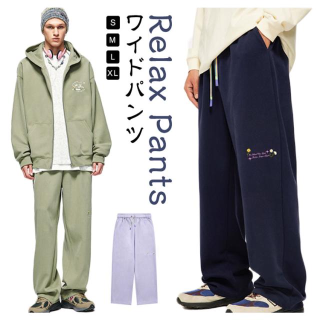 刺繍入り スウェットパンツ メンズ ゆったり ワイドパンツ ストリート系 ストレートパンツ ロングパンツ ジャージパンツ ルームパンツ 運動用 スポーツ ルームウェア 部屋着 イージーパンツ バギーパンツ リラックスパンツ ダンスパンツ アメカジ 春 秋 冬 送料無料