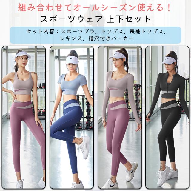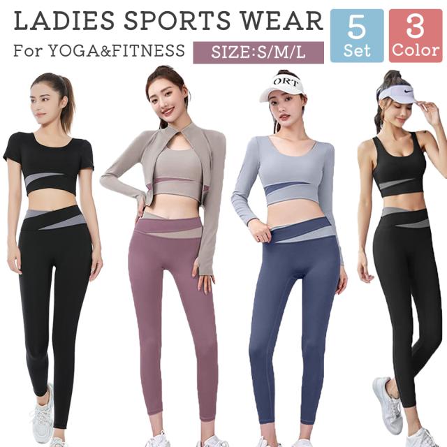 ヨガウェア 5点セット スポーツウェア レディース セット ヨガ 半袖 長袖 タンクトップ パーカートップス パンツ 上下セット ランニングウェア ウォーキング トレーニングウェア レギンス Tシャツ フィットネスウェア 大きいサイズ おしゃれ 通気性 伸縮性 吸水速乾