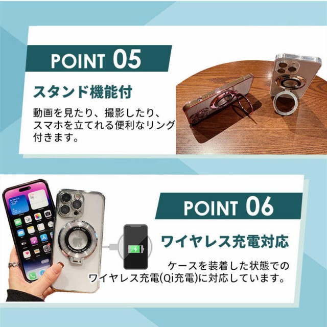 ケースを装着した状態でのワイヤレス充電(Qi充電)に対応しています。