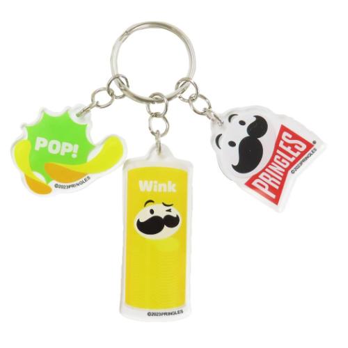 「プリングルズ キーリング 3連アクリルキーホルダー イエロー お菓子パッケージ キャラクター グッズ メール便可」