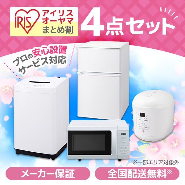XPRICE限定! 新生活応援 アイリス家電4点セットA [冷蔵庫(90L・右開き) / 全自動洗濯機(6.0kg) / 単機能電子レンジ(17L) / マイコン式ジャー炊飯器(1.5合炊き)]