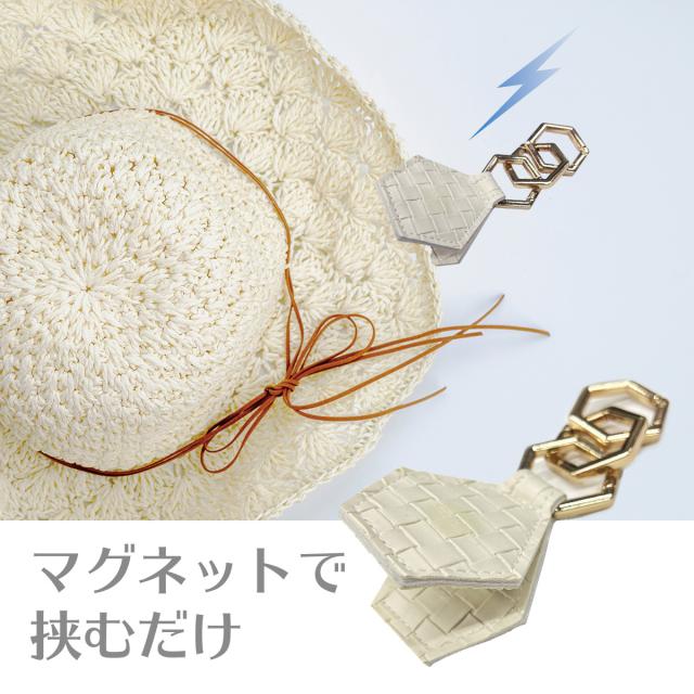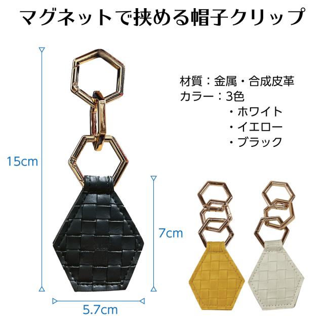 マグネットで挟む帽子クリップです。